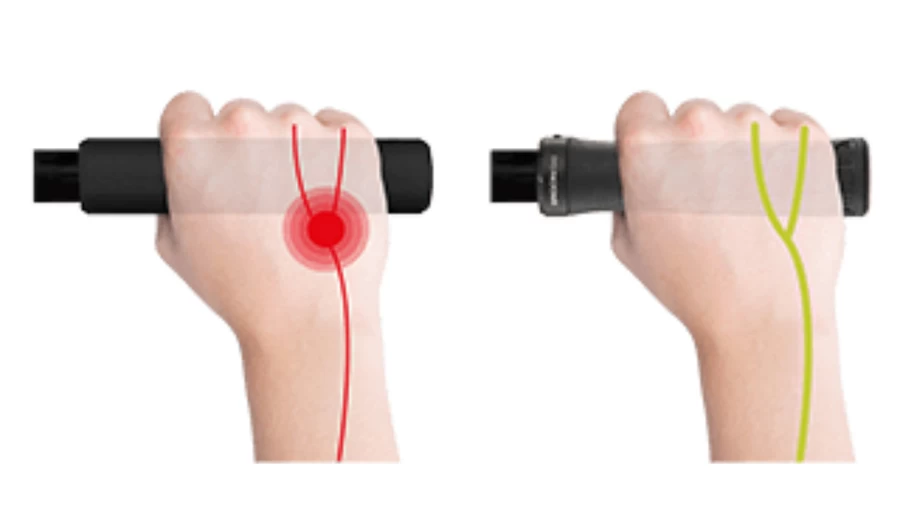 Outer-Core: The ergonomically optimized shape requires little gripping force, the textures adapt to the gripping zones of the hand.